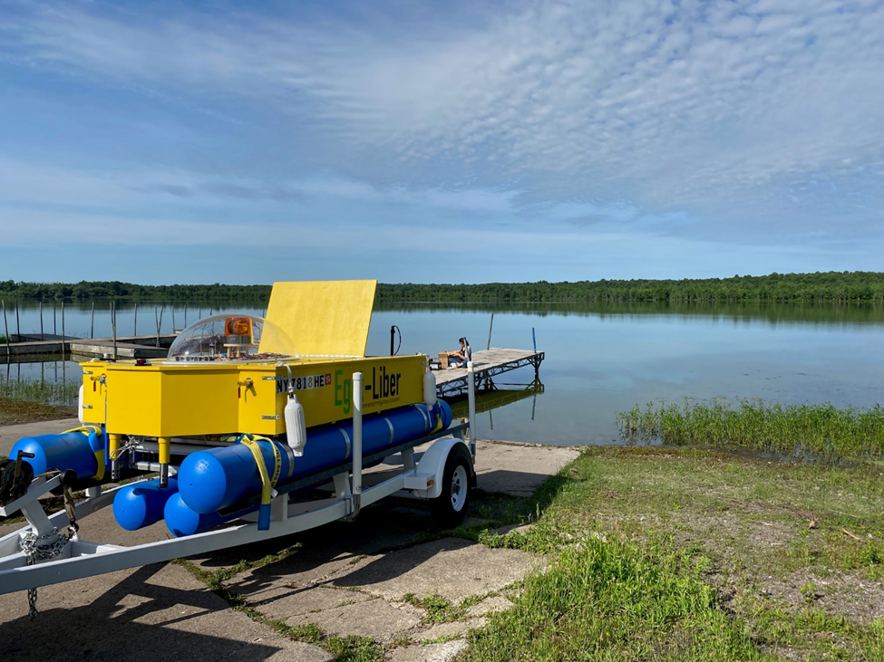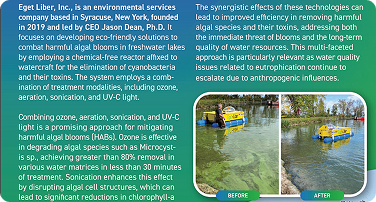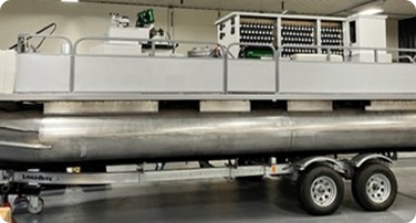 In 2022, Eget Liber developed a 25-foot mitigation vessel under a CRADA agreement with the U.S. Army Corps of Engineers (ERDC). This supersize vessel is powered by three onboard generators, and boasts a 12.75 foot long reactor chamber capable of delivering over 5,500 watts of UVC light, coupled with 200 watts of internal sonication and dissolved ozone (O3).
